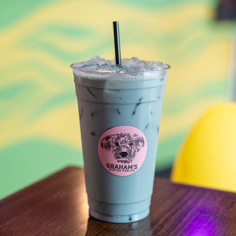 Barista-made concentrate, fruity green tea latte with butterfly peaflower tea, lavender and house vanilla syrup.